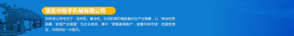 瑞安市皓宇機械有限公司是瑞安一家私營責(zé)任有限公司,注冊資金200萬,員工40余人,是具有獨立法人地位,專業(yè)生產(chǎn)定做各種非標準涂布機、復(fù)合機、印刷機、分切機、壓膜機等機械設(shè)備的制造廠。公司的機器主要用于生產(chǎn)保護膜、膠帶、雙面膠、不干膠、相紙、油畫布、汽車防爆膜、熱轉(zhuǎn)印、燙金膜、離型膜、離型紙、軟包裝印刷、軟包裝復(fù)合、軟包裝分切等各種產(chǎn)品...  [詳細]